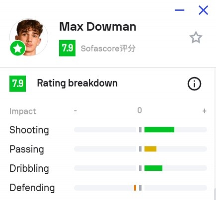 在此之前足总杯对曼斯菲尔德,道曼就给出了很好的数据。比赛半小时计道曼的射门次数(4次)、夺回球权次数(6次)以及在对方禁区内触球次数(6次)均是比赛第一多。赛后也被专业人士夸赞。
