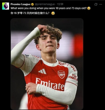 英超官方不禁亲自发文提到:吧友们,你们16岁零73天时在做什么?